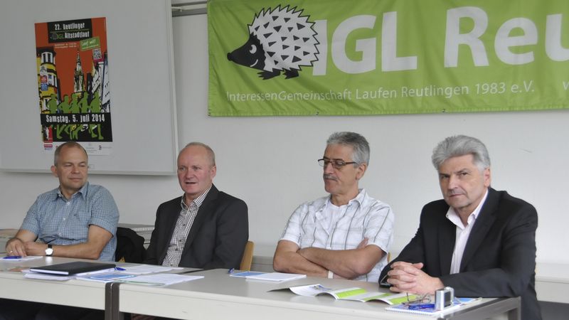 Das Pressegespräch, auf dem die Einzelheiten zum diesjährigen Altstadtlauf bekanntgegeben wurden, fand auch in diesem Jahr in der Handwerkskammer Reutlingen statt. Auf dem Bild zu sehen sind Horst Jägel, Michael Röder, Karlheinz Reutter und Rolf Jetter (v.l.n.r.).