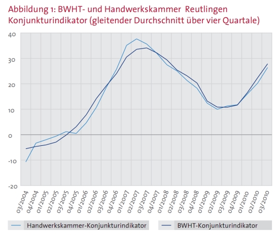 Nach einer repräsentativen Umfrage in den Landkreisen Freudenstadt, Reutlingen, Tübingen, Sigmaringen und Zollernalb bewertet die Hälfte aller Unternehmen die aktuelle Geschäftslage mit der Note „gut“. Die Erwartungen fallen sogar noch etwas besser aus: 55,6 Prozent der Handwerker rechnen mit einem erfolgreichen Herbst. Gleichzeitig ist der Anteil der Skeptiker in den vergangenen zwölf Monaten deutlich zurückgegangen: 5,9 Prozent der befragten Handwerker erwarten für das vierte Quartal eine schlechtere Geschäftslage. Im Vorjahresquartal teilte noch jeder fünfte Betrieb (19,3 Prozent) diese Einschätzung. Der Konjunkturindikator der Handwerkskammer erreicht mit 46,1 Punkten den höchsten Stand seit Anfang 2008.