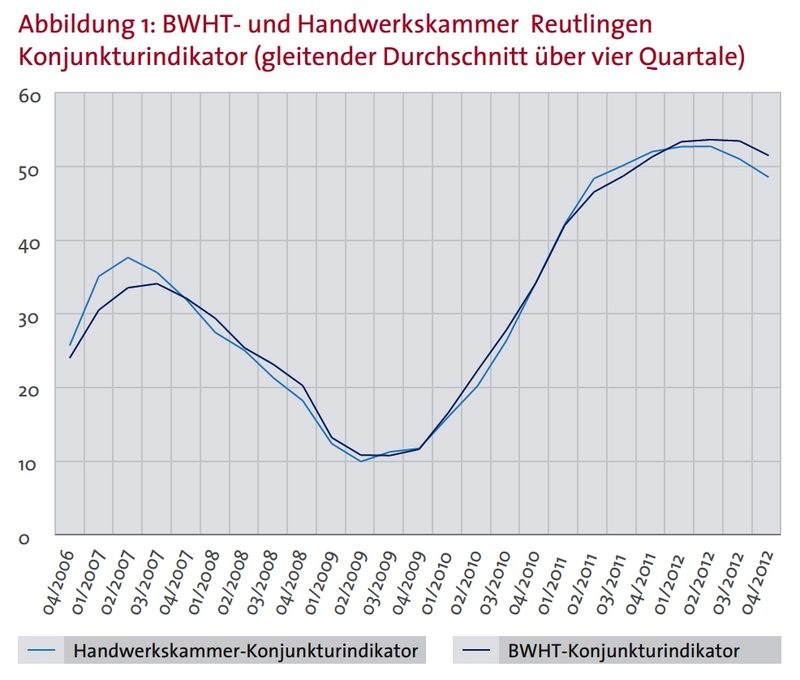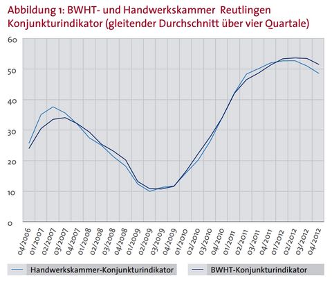 Knapp die Hälfte der befragten Betriebe in den Landkreisen Freudenstadt, Reutlingen, Sigmaringen, Tübingen und Zollernalb bewertete die wirtschaftliche Situation im vierten Quartal 2012 mit der Note „gut“. Ein Jahr zuvor waren es noch 60 Prozent. Auch die Prognose fällt nicht mehr ganz so optimistisch aus. Rechneten vor zwölf Monaten noch rund sechs von zehn Betrieben mit einer guten Geschäftsentwicklung in den kommenden Monaten, ist es heute nur noch jeder Zweite. Gleichzeitig ist die Zahl derer, die über schlechte Geschäfte klagen, von acht auf sieben Prozent gesunken.