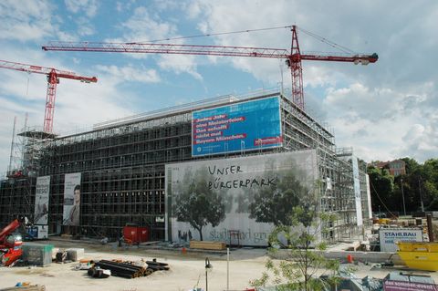 Dass die Handwerkskammer Reutlingen ihre Meisterfeier in der neuen Stadthalle feiern wird, das kann jetzt schon jeder vermuten. Schließlich macht ein Transparent am Baugerüst unübersehbar darauf aufmerksam: „Jedes Jahr eine Meisterfeier. Das schafft nicht einmal Bayern München.“ Mit Fertigstellung der Stadthalle wird künftig also dort die jährliche Meisterfeier stattfinden.