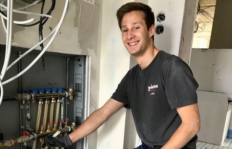 Abitur und was dann? Jonas Klink entschloss sich bereits vor seinem Abschluss für ein einwöchiges Praktikum bei einem Heizungsbauer in Esslingen. „Ein guter Bekannter von mir, der lange Zeit im SHK-Bereich selbständig war, berichtete mir von der unglaublichen Vielfalt und den abwechslungsreichen Arbeitsalltag dieses Berufs. Und so entschloss ich mich erst einmal für ein Praktikum, bevor ich mich bei der Gerhard Leicht GmbH nach dem Abi bewarb“, erzählt Jonas Klink von seinem Weg ins Handwerk.