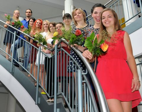 Gruppenbild mit Mann: Meisterschülerinnen und ein Meisterschüler des Jahrgangs 2014 im Maßschneiderhandwerk.