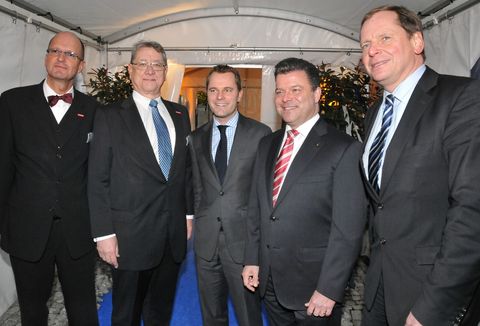 Gast und Gastgeber: Bundesgesundheitsminister Daniel Bahr (Mitte), Hauptgeschäftsführer Dr. Joachim Eisert und Präsident Joachim Möhrle (links), IHK-Präsident Christian O. Erbe und IHK-Hauptgeschäftsführer Dr. Wolfgang Epp (rechts).