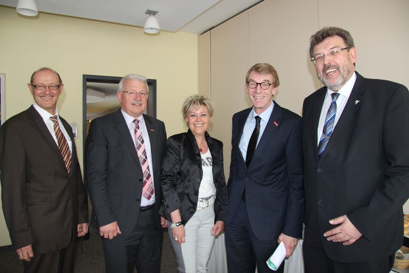 KHS-Geschäftsführer Karl Griener, Kreishandwerksmeister Siegmund Bauknecht, die Abteilungsleiterin der Handwerksrolle Petra Uano-Hamann, der Präsident der Handwerkskammer Harald Herrmann und Bürgermeister Thomas Kugler. (v.li.n.re.) Foto: Günther G. Töpfer
