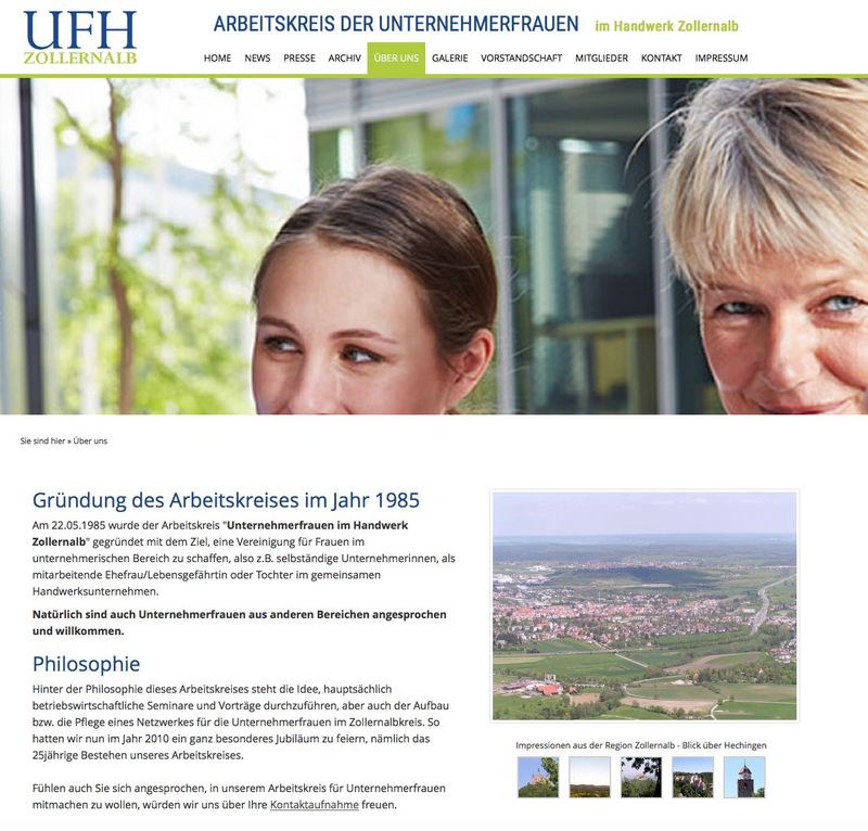 Der Arbeitskreis der Unternehmerfrauen im Handwerk Zollernalb (UFH) hat eine neue Internetseite. Auf www.ufh-zollernalb.de finden sich alle Informationen über den am 22. Mai 1985 gegründeten Zusammenschluss.