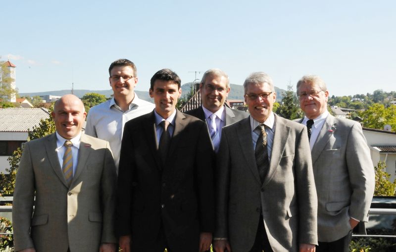 Unabhängige Experten: Die neuen Sachverständigen Günter Klingenstein, Joachim Linder, Volker Veith und Siegfried Rothmund, umrahmt von Rainer Neth, stellv. Hauptgeschäftsführer, und Kammerpräsident Joachim Möhrle.