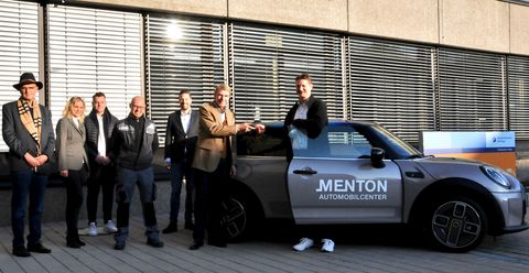 Im Beisein von Kammerpräsident Harald Herrmann, Hauptgeschäftsführer Dr. Joachim Eisert, Ausbilder und Werkstattleiter Michael Deile sowie Monika Kromer, stellvertretende Geschäftsbereichsleiterin der Bildungsakademie übergab Stefan Clauss vom Autohaus Menton das neue Elektroauto. Jonas van Rossenberg, Geschäftsleitungsassistent und Florian Pokahr, BMW Group, Vertrieb Deutschland, waren ebenfalls bei der feierlichen Übergabe anwesend. Der vorhandene Fuhrpark im Werkstattbereich besteht aus mehreren Fahrzeugen unterschiedlicher Marken, Fahrzeugklassen und Baujahren, der durch die aktuelle Spende der BMW AG ideal ergänzt wird. Der kultige Mini-Cooper in der E-Variante hat 184 PS und eine Reichweite von circa 234 Kilometern.