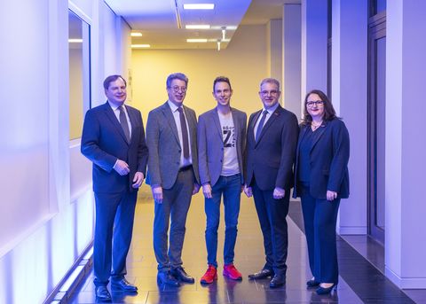 Dr. Wolfgang Epp, IHK-Hauptgeschäftsführer, Johannes Schwörer, Vizepräsident der IHK, Keynote-Speaker Felix Behm, Alexander Wälde, Präsident der Handwerkskammer, und Hauptgeschäftsführerin Christiane Nowottny (v.l.n.r.). Foto:Gaby Höss