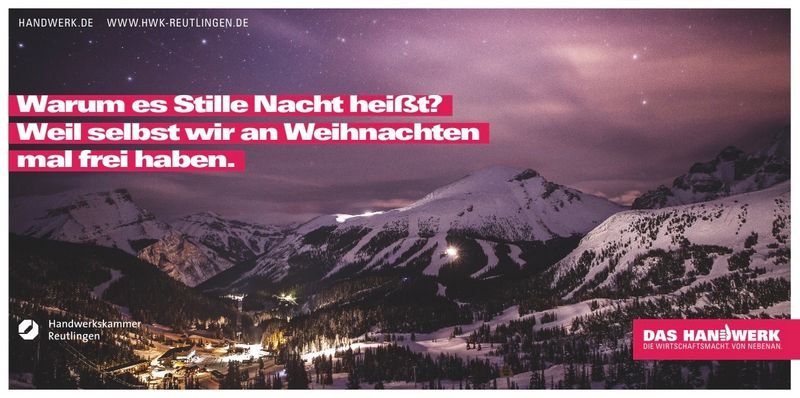 Die Handwerkskammer Reutlingen und ihre Bildungseinrichtungen in Reutlingen, Sigmaringen und Tübingen bleiben an Weihnachten und in der „Zeit zwischen den Jahren“ bis zum Neujahrstag geschlossen. Ab dem 2. Januar 2018 werden die Mitarbeiterinnen und Mitarbeiter wieder erreichbar sein.