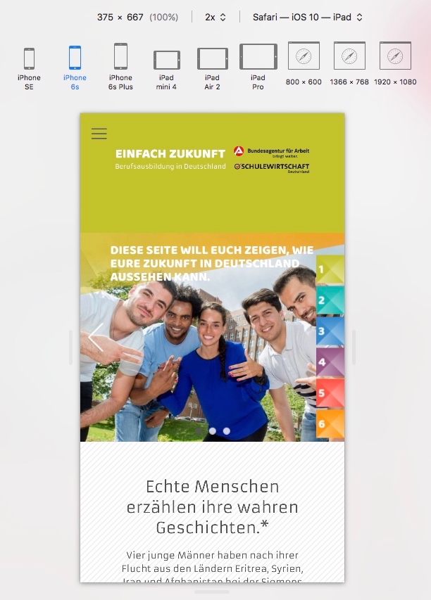 Das Produkt ist eine Website für mobile Endgeräte, die auch in Englisch, Französisch, Arabisch, Tigrinya und Farsi angeboten wird. In einem nächsten Schritt ist geplant, junge Frauen zu Wort kommen zu lassen. Der Online-Flyer ist unter dem Link Website www.einfachzukunft.de abrufbar.