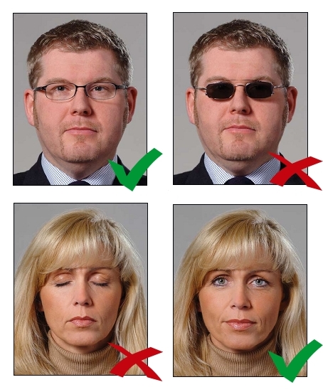 "Die Person muss auf dem Foto direkt in die Kamera blicken." - Beispiele aus der Fotomustertafel für Personaldokumente des Bundesministeriums des Innern. Quelle: Bundesdruckerei