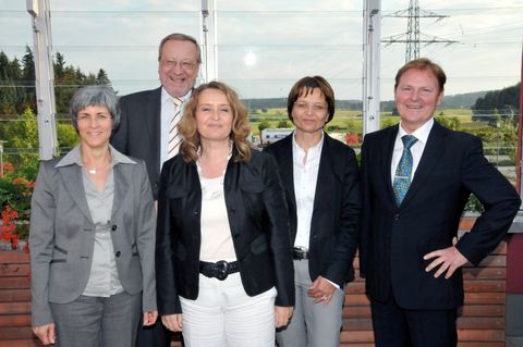 Annette Beermann (Referat Bonitätsanalyse und Wertpapiere der Deutsche Bundesbank Stuttgart), Hermann Rieker (Leiter der Filiale Reutlingen der Deutschen Bundesbank), Sylvia Weinhold (Geschäftsführerin Unternehmensberatung der Handwerkskammer Reutlingen), Irmgard Freidler (Geschäftsführerin Alb-Gold) und Wolfgang Schnaufer (Leiter des Referats Bonitätsanalyse und Wertpapiere der Deutschen Bundesbank Stuttgart, v. li. n. re.).