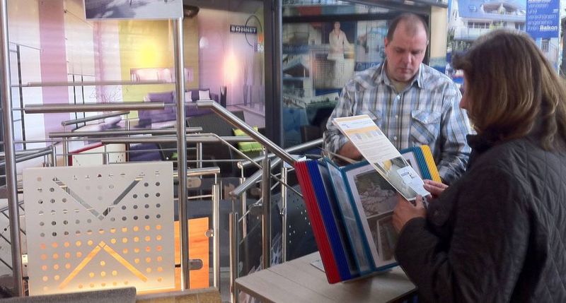 Metallbau Bohnet kann jedenfalls über alles „was mit Geländern zu tun hat“ infor-mieren, so Dietmar Kühn. Und besonders stolz ist er über die patentierten, mit PU-Schaum beschichteten langlebigen Glasfaserbodenplatten, die die Firma im Angebot hat.