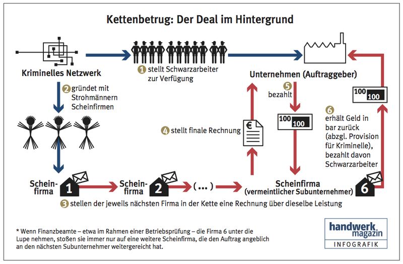 Das ‚handwerk magazin‘ wollte es genau wissen: Wie funktionieren eigentlich die Hinterzimmer-Geschäfte um die Schwarzarbeiterkolonnen? Zollbeamte und Steuerfahnder haben der Redaktion die heimlichen Maschen der organisierten Kriminalität detailliert erklärt.