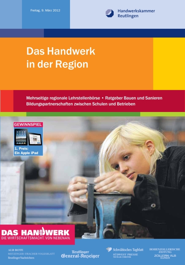 Die Handwerkskammer Reutlingen hat erneut gemeinsam mit Tageszeitungen aus der Region ein Paket geschnürt, damit Sie Ihren Betrieb in einer hochwertigen Beilage im Magazin-Format präsentieren können.