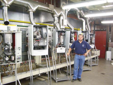 Dank dieses Engagements kann Mößmer seine Schützlinge an Geräten sämtlicher Hersteller schulen. In der SHK-Ausbildungswerkstatt werden gut 600 Personen pro Jahr unterrichtet, ob in der Ausbildung, dem Meisterkurs oder der Weiterbildung. Sie arbeiten an gesponserten Geräten folgender Hersteller: Buderus, Vaillant, Junkers, Wolf, Viessmann, Oertli, Weishaupt, Elco, Grundfos, Riello und Hermann.