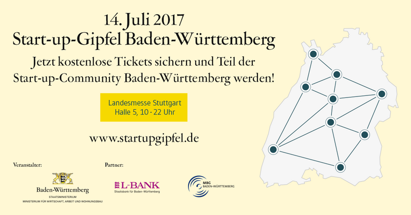 Am 14. Juli trifft sich die baden-württembergische Gründerszene auf der Landesmesse Stuttgart. Beim Start-up-Gipfel geht es um Beratung, Erfahrungsaustausch und vor allem um Vernetzung. Kostenlose Tickets können ab sofort gebucht werden.