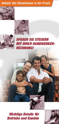 Seit dem 1. Januar 2006 können 20 Prozent von maximal 3.000 Euro der erbrachten handwerklichen Arbeitsleistungen steuerlich geltend gemacht werden. Bei Vorliegen von Handwerkerrechnungen mit ausgewiesener Umsatzsteuer und Nachweis der Zahlung im unbaren Zahlungsverkehr reduziert sich die zu zahlende Einkommensteuer um bis zu 600 Euro im Jahr.