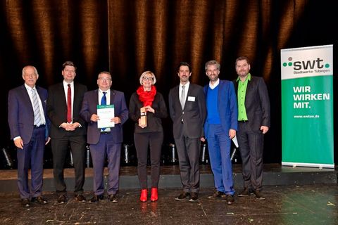 Mit dem erstmals vergebenen Umweltpreis der Stadtwerke Tübingen für Betriebe wurde die Ammertäler Metzgerei Egeler ausgezeichnet. Insgesamt hatten sich 19 Unternehmen mit betrieblichen Klima- und Umweltschutzmaßnahmen beworben.