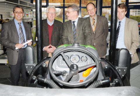 Technik, die begeistert: Ewald Heinzelmann, Karl Duffner, Joachim Möhrle, Joachim Eisert und Harald Herrmann im Ausstellungsraum der Duffner Landtechnik.