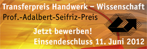Der Transferpreis Handwerk – Wissenschaft (Prof.-Adalbert-Seifriz-Preis) wird für erfolgreiche Kooperationsprojekte vergeben, die neue Produkte, Verfahren, Dienstleistungen oder neue Formen der betrieblichen Organisation entwickelt haben. Bewerben können sich Handwerker und Wissenschaftler gemeinsam. Ihr Projekt muss zu einem abgeschlossenen Ergebnis gekommen sein, bereits auf dem Markt eingeführt sein oder Marktchancen aufweisen.