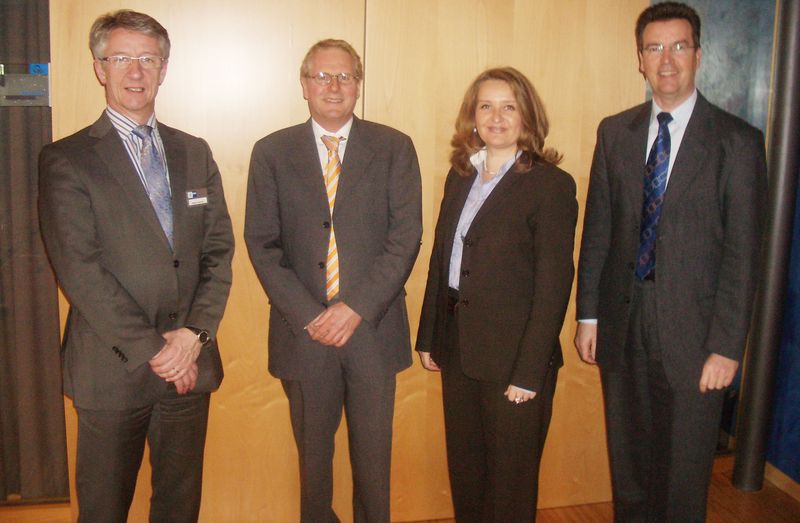 Stefan Hammes (IHK Nordschwarzwald), Hans Frey (Steuerberater), Sylvia Weinhold (Betriebsberaterin der Handwerkskammer Reutlingen) und Siegfried Dreger (Geschäftsführer der Kreishandwerkerschaft Freudenstadt) (v.l.n.r.).