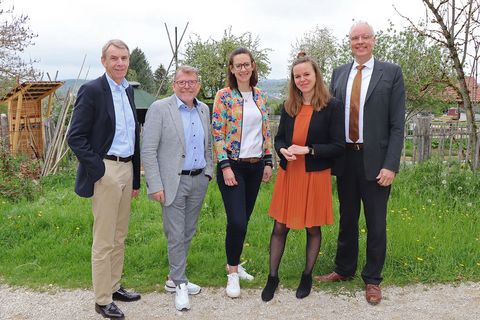 Prof. Dr. Markus Nawroth, Bereichsleiter bei der IHK, sprach mit den Kandidaten für den Münsinger Gemeinderat Stefan Gaub (CDU), Thomas Hagmaier (Liberale Wähler), Ralf Hintz (Freie Wähler), Adolf Lamparter (SPD) und Sebastian de Lenardis (Bündnis 90/Die Grünen) über Wirtschaft und Bildung, digitale Infrastruktur, Bürokratieabbau und Ausbau von erneuerbaren Energien. Bürgermeister Mike Münzing hob die Leistungen der Stadt Münsingen beim Thema Wirtschaftsförderung in den letzten Jahren hervor. Vieles sei – auch im Hinblick auf eine Weiterentwicklung der Unternehmen – auf den Weg gebracht worden, ganz aktuell die Erweiterung des Industriegebiets zu einem Innovationspark mit unterschiedlichen Branchen in Quartieren und die Schaffung von Wohnraum für Fachkräfte im Völter-Areal, in dem 90 Wohneinheiten entstehen.