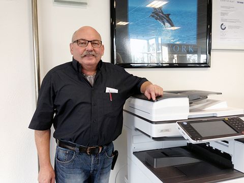 Jörg Schmidt war 28 Jahre im Außendienst tätig und dort für Service und Kundendienst von Multifunktionsgeräten, Kopierern, Druckern und Faxgeräten zuständig. „Er besitzt die Fähigkeit, viele Aktivitäten gleichzeitig abzuwickeln“, lobt Geschäftsführer Wilfried Zieringer seinen treuen Mitarbeiter, der seit zwei Jahren den Innendienst verstärkt. Dort checkt er neue Maschinen, überholt gebrauchte Apparate, wickelt das komplette Dispatching der Technik ab und plant den Roll Out bei größeren Projekten. Gleichzeitig berät Jörg Schmidt die Kunden der ZDS Bürosysteme GmbH kompetent am Telefon bei Problemen und technischen Fragen.