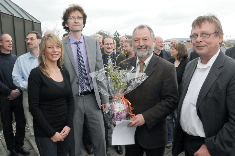 Für Adolf Jetter war es die letzte Teilnahme am Expertenkreis. Nach zwanzigjähriger Tätigkeit bereitet sich der Innovations- und Technologieberater der Handwerkskammer Reutlingen nun vorrangig auf den Ruhestand vor. Am 1. Mai beginnt für Jetter die passive Phase der Altersteilzeit. Zum Abschied hatten die Kollegen ein besonderes Geschenk aufgetrieben. Walter Pirk und Manfred Fülbier vom Heinz-Piest-Institut hatten in den Akten gestöbert und die Stellungnahme zu Jetters Bewerbung aus dem Jahr 1991 gefunden. „Aufgrund der uns vorgelegten Unterlagen halten wir Herrn Jetter zur Übernahme der Aufgaben für geeignet“, heißt es da. Jetter nahm das Schriftstück mit einem Schmunzeln entgegen.