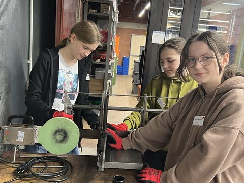 Keine Angst vor Maschinen: Auch den Schülerinnen hatten in der Metallwerkstatt viel Spaß.