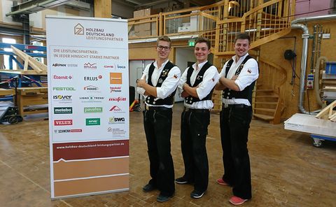 Vorbereitet wurde das Team durch die beiden Ausbildungsmeister Sascha Brück aus dem Bundesbildungszentrum für das Zimmerer- und Ausbaugewerbe (Bubiza) in Kassel und Michael Rieger aus dem Zimmerer-Ausbildungszentrum in Biberach.