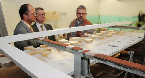 Seit dem Umzug ist die Schreinerei stark gewachsen. Die Mitarbeiterzahl hat sich auf zwölf verdoppelt. Zurzeit werden vier Nachwuchskräfte ausgebildet. „Schreiner, nicht Tischler“, betont Prüfer Dittus, der sich mit der bundeseinheitlichen Berufsbezeichnung noch immer nicht anfreunden kann.