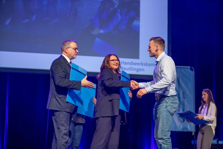 279 frischgebackene Meisterinnen und Meister aus 13 Gewerken erhielten bei der diesjährigen Meisterfeier in der Volksbankmesse Balingen ihre Meisterbriefe und wurden für ihre herausragenden Leistungen und ihren erfolgreichen Abschluss geehrt. Rund 1.000 Gäste ließen es sich nicht nehmen, die neuen Spitzenkräfte des Handwerks zu feiern. Unter ihnen auch zahlreiche Vertreterinnen und Vertreter aus Politik, Wirtschaft und Gesellschaft.